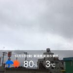 今朝は雨の新潟市東区です。これから風が強くなる予報です。
