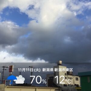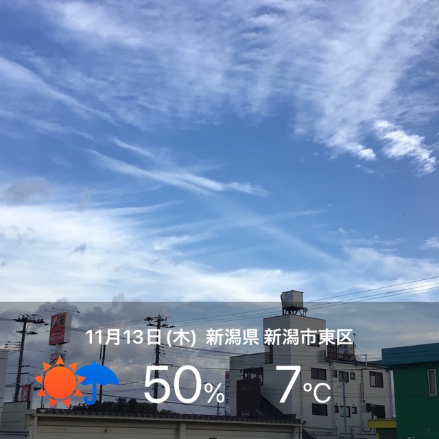 今朝は曇りの新潟市東区です。