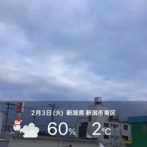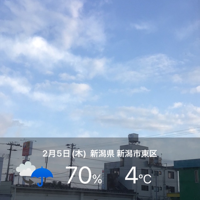 今朝は青空の見える曇りの新潟市東区です。