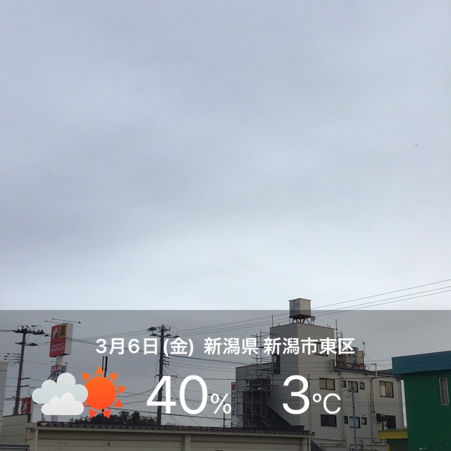 今朝は曇りの新潟市東区です。