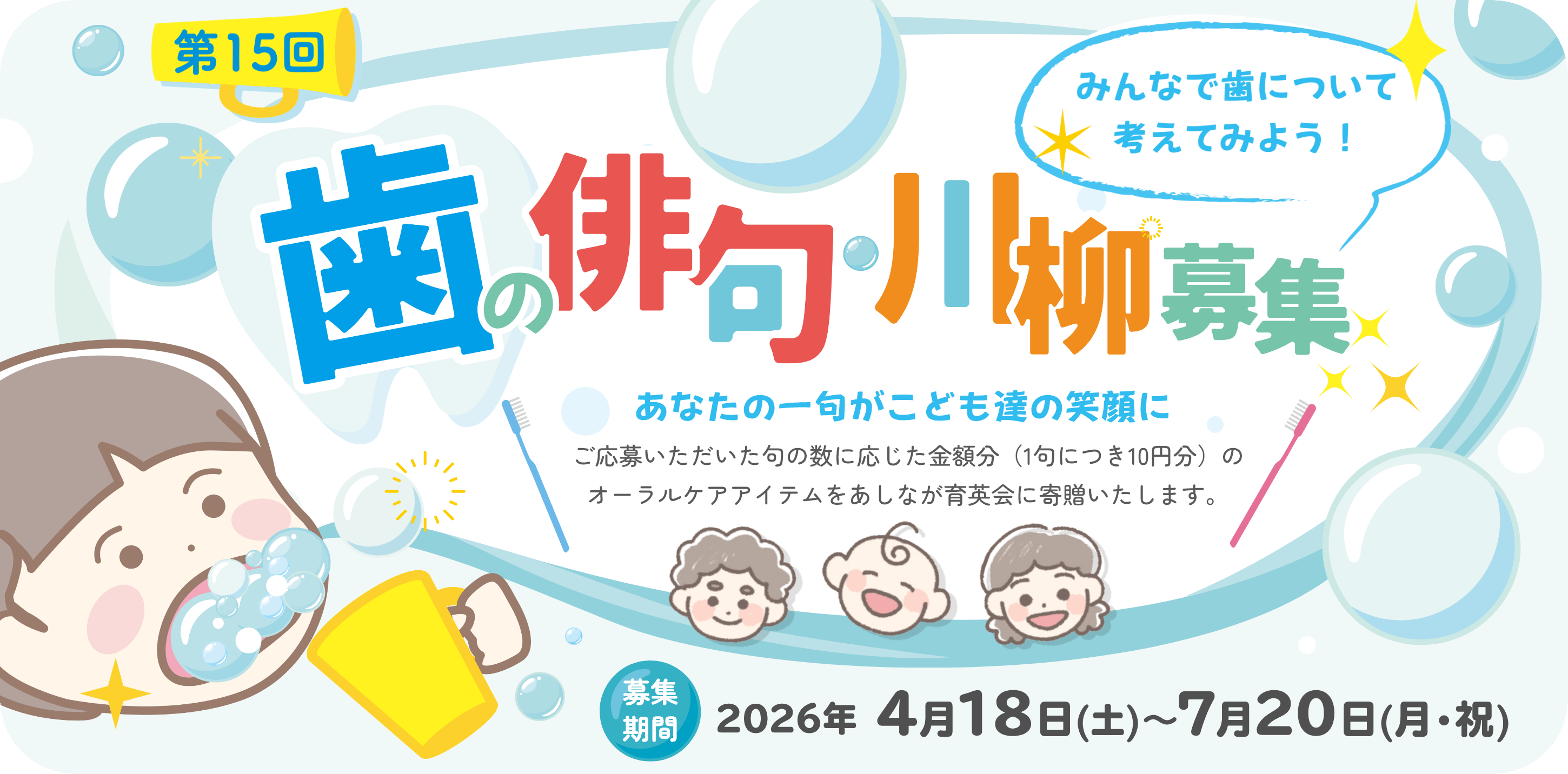 株式会社松風さんが、「歯」に関する俳句・川柳を大募集しています。応募数に応じてオーラルケアアイテムが寄贈される企画とのことです。
